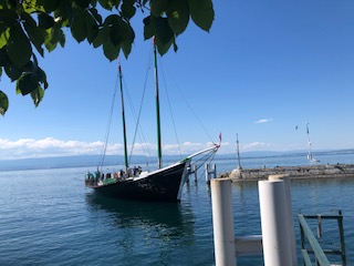 Evian is packed with people strolling along the promenade, the kiosks are doing a roaring trade in ice-cream and take-away drinks, beer and wine included. The magic roundabout and playgrounds are full of slightly manic chil-dren burning off their pent-up energy. The lake is crystal clear, and each day sees more boats venturing out of the marina, the invigorating breeze blowing away the cobwebs of 2 months’ confinement. The graceful historic ship ‘the Savoie’ is plying her way tranquilly along the shoreline.